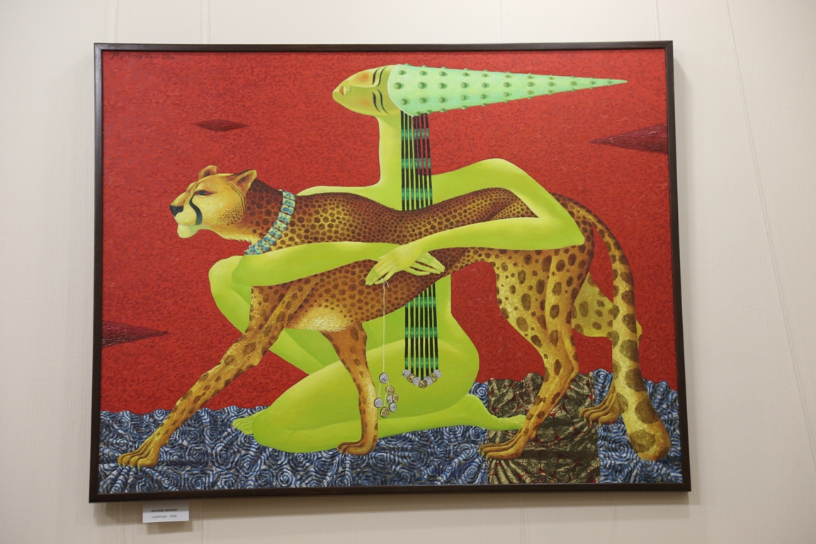 Прекрасно вписываются в восточную живописную традицию работы Максима Варданяна – блестящие декоративные цветочные букеты. Органичен МухтарИсанов с его сюрреалистическими композициями, блистателен Тимур Ахмедов, использующий не только восточные, но и европейские мифы.