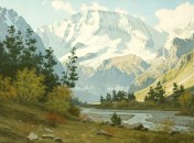 Н. Райбаца, родившегося в Кабардино-Балкарии, в городе Тырнаузе, горы детства не отпускают всю жизнь, и он, год за годом, возвращается к ним. Горы в его работах представлены монументально, мощно. Они манят к себе красотой растительного убранства, озёрами, кристальной чистотой воздуха и захватывающими дух панорамными видами. Райбацу, как никому другому, удаётся создать величавый образ Кавказской природы, который порождает в душе зрителя чувство возвышенного покоя. Кавказские горы - родина и для В. Мехеда, их суровая красота в работах автора держит зрителя в напряжении. Его горы - это сияющие холодным светом снеговые вершины, отражённые в тёмно-бирюзовой прозрачности горных озер; склоны, припорошенные ранним снегом и жизнь людей, в тесном соседстве с ними. А вот В.Бугай любит крымские горы; то тонущие в томном приморском мареве, с контрастами света и тени, с взбирающимися по склонам приморскими городишками и посёлками, то отдаленные панорамы, раскрывающие величие и причудливую особенность горных кряжей. Крым - колыбель российской пейзажной школы с давних времён. Дача Максимилиана Волошина в Коктебеле принимала не мало известных художников России 20 века. Недавно Крым посетил известный на Кубани заслуженный художник России А. Паршков. Пейзаж не характерен для его творчества. Но горы Крыма разбудили в нём пейзажиста. Крымские горы А. Паршкова – это игра цветовых отношений и форм. Его тоже привлекла панорамная форма представления горных массивов. Для творчества одного их лучших маринистов Кубани Г.Аракеляна, певца моря и города Новороссийска, горы - неотъемлемая составляющая каждой работы. Свою любовь к приморскому, новороссийскому пейзажу он пронёс через всю творческую жизнь. И эта единственная устойчивая любовь принесла ему славу живописца-мариниста Кубани. В.Яковлев увлёкся горным пейзажем не так давно. Тема гор у него переросла в своеобразный цикл работ, где автор воспевает красоту гор в разные времена года. Его манят заросшие пышной растительностью ущелья, куда с трудом проникает свет; текущие по ним небольшие водные потоки; причудливый рельеф, с неприступными скалистыми стенами и растительностью на них; контрасты света и тени.