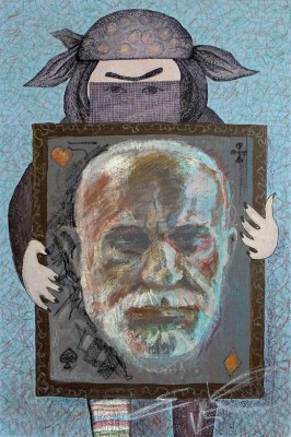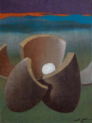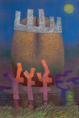 Евгений Кацицын – один из немногих художников на Кубани, которые осознали смысл творчества как рождение Космоса из Хаоса. Родственно вырастая из русского лубка и русского авангарда, Казицын создает своего рода современную «энциклопедию русской жизни». Его интересует история, мифология, фольклор, быт, нравы, психология людей, взаимоотношения мужчины и женщины. В основе сюжетов могут быть народные пословицы и поговорки. Его персонажами часто становятся камни и глина, несущие в себе следы космической жизни, планет и звезд, атомов и молекул, воды, земли, растений, животных. Из камней можно построить дом и даже город, из глины создать сосуды и наполнить их жизнью. Натюрморт с глиняными сосудами, городской пейзаж, портрет, картина, символическая композиция – во всех этих жанрах образы переходят в символы, что придает им смысловую глубину и смысловую перспективу.